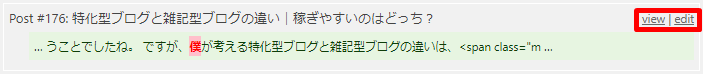 該当の記事をプレビュー表示したい場合にはviewを、該当の記事を個別で編集したい場合にはeditをクリックすることで記事ごとに編集できます。