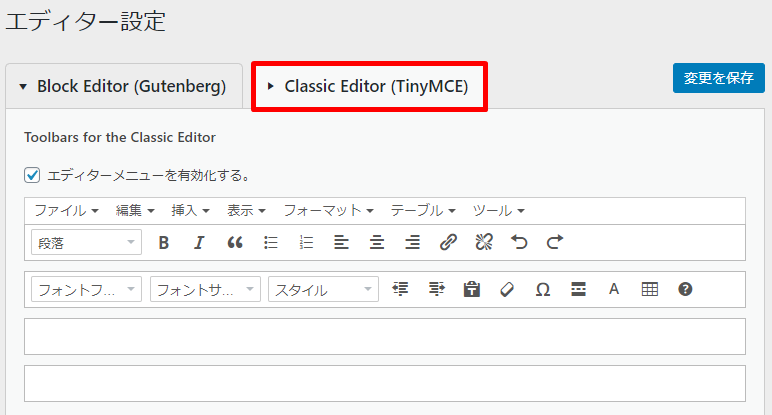 Classic Editor(TinyMCE)をクリックしましょう。
