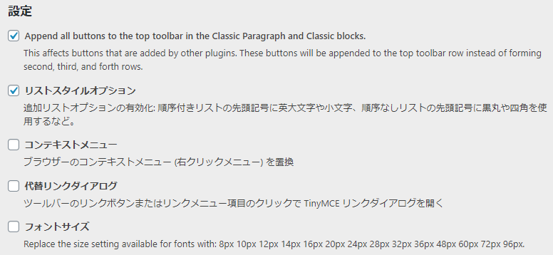 Gutenberg(ブロックエディター)において、全てのブロックでTinyMCE Advancedプラグインで設定したツールバーを1番上に表示します - リストスタイルオプション