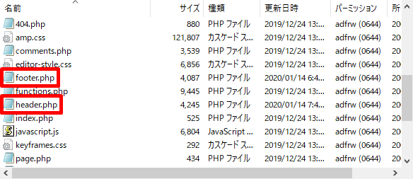 なお、お使いのテーマによっては親テーマの中にしかfooter.phpが存在しない場合があります。(Cocoonテーマなど)