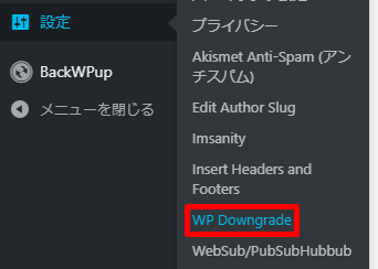 ダッシュボードの設定の中にあるWP Downgradeをクリックします。