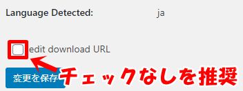 edit download URLという項目が表示されますが、これは「WordPressの公式サイト以外から過去バージョンのデータを取得するかしないか?」というチェックボタンですので基本的にチェックは入れなくてOKです。