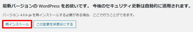 再インストールするWordPressバージョンに誤りがないか確認の上、再インストールをクリックします。
