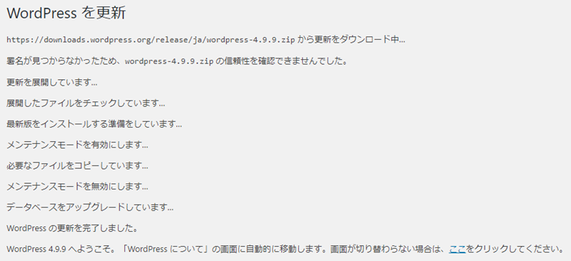 これでWordPressのダウングレードは完了です。お疲れさまでした。