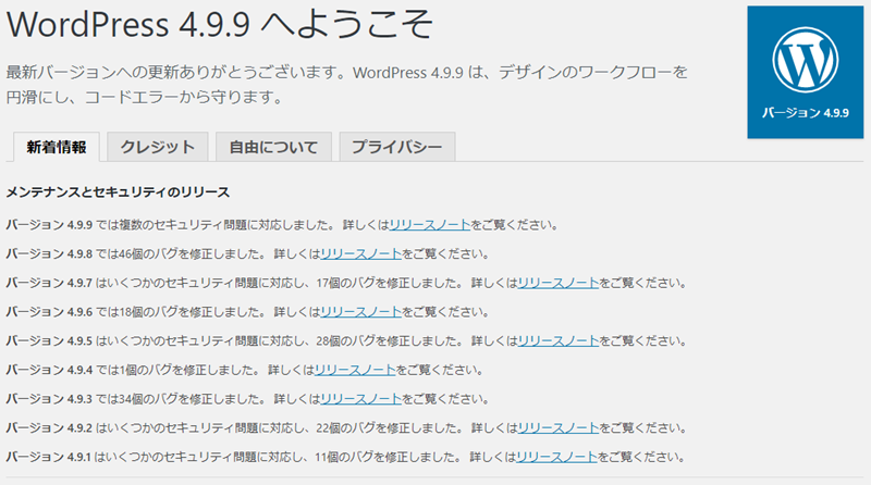 上記キャプチャーでは5.0~の旧バージョンしか映っていませんが、4.0台のWordPressバージョンに戻すことも可能です。