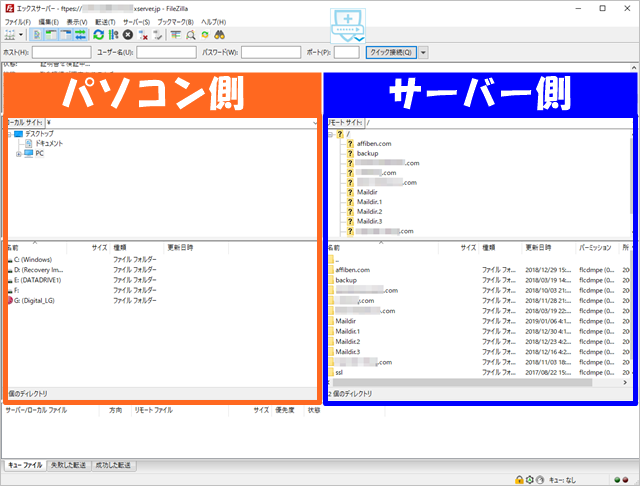 サーバー側の自動バックアップに加え、自分でもFTPを使って全ファイルをダウンロードし保存しておくと安心です。
