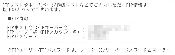 | さくらインターネット | コントロールパネル → サイト設定 → FTPアカウント情報確認 |